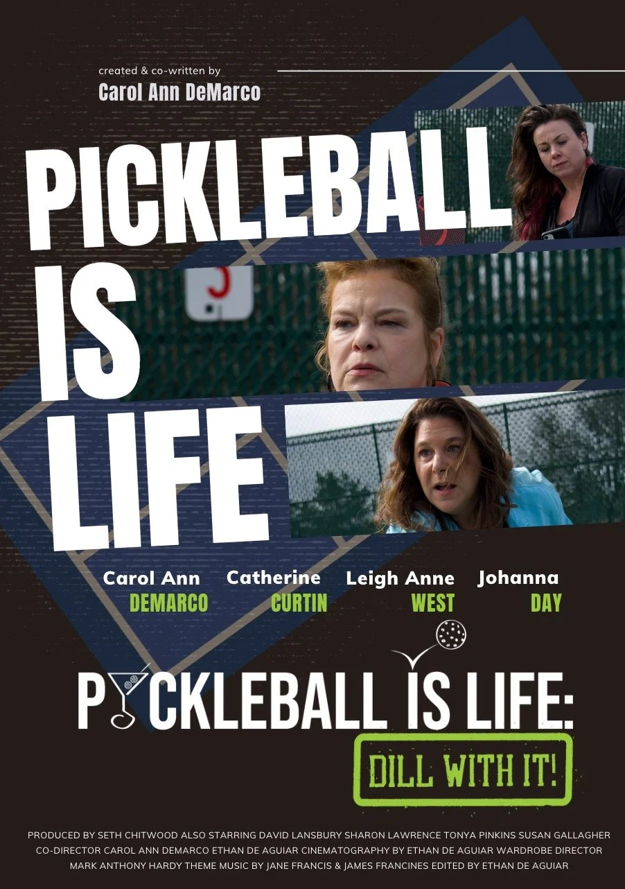Thus, began a two-year project where I played pickleball by day and filled my nights writing draft after draft, researching how to produce a TV pilot and assembling a team. I booked a crew from New York City to spend four days shooting in Cape May. Word of mouth about the project grew, and as established and respected actors read the script, they were eager to be part of this pilot. That is how indie darling Cathy Curtin (Stranger Things, Orange is the New Black), Sharon Lawrence (NYPD Blue, Joe Pickett), David Lansbury (Oz), Johanna Day (two-time Tony nominee, Madam Secretary), and Tonya Pickens (Gotham) all came on board to star in the comedic mockumentary Pickleball is Life: DILL with it! For me to star alongside such talent was an incredible experience!