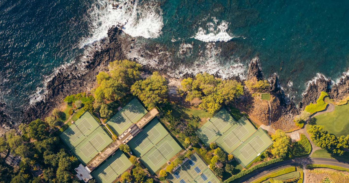 Paradise found. These courts perch above one of Hawaii’s most stunning beaches, with palm trees for shade and the Pacific as your backdrop. Play a few sets, then dip into Kauna’oa Bay, sip a Mai Tai, and watch the sun set from the club’s lanai. It’s the kind of place that feels imagined—until you step onto the court and see the ocean sparkle just beyond the baseline.