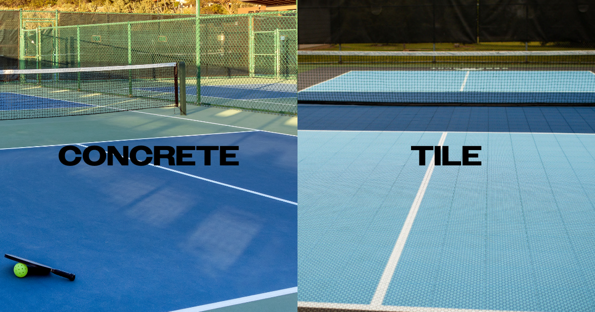 An up close comparison of concrete courts and tile courts.